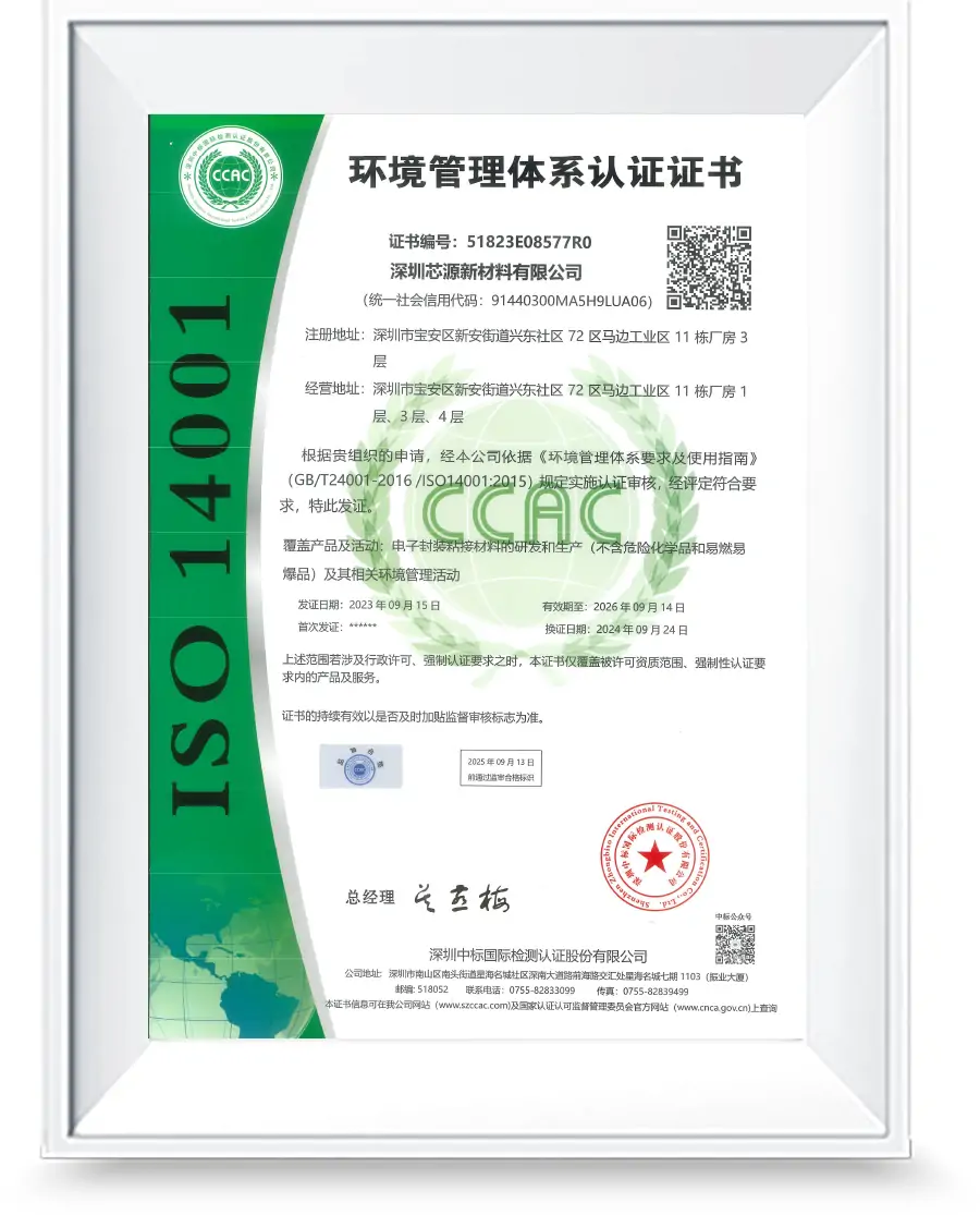 In accordance with the requirements of the ISO 9001:2015 international standard, a quality management system has been established and practiced, covering the whole life cycle management of the design, development, manufacturing and after-sales service of electronic packaging and bonding materials, so as to ensure that the quality of the whole process from raw material procurement to terminal delivery is controllable.